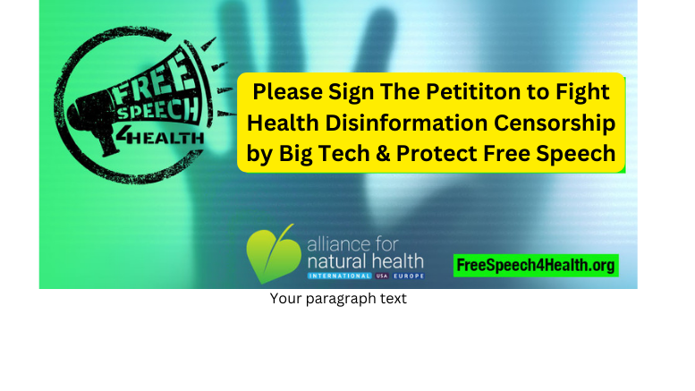anh-usa.org/free-speech-4-health/ [https://anh-usa.org/wp-content/uploads/2021/09/ANH-logo300.png]<anh-usa.org/free-speech-4-health/> Why the Free Speech 4 Health Petition Matters – Alliance for Natural Health USA – Protecting Natural Health<anh-usa.org/free-speech-4-health/> Censorship is the enemy of free and open society, impeding our ability to think critically, discover truth, reject falsehoods, and engage with diverse viewpoints. Yet censorship has been driven to new heights by private companies in today’s digital world, where so many of us get our information online. Private tech companies have developed sophisticated mechanisms anh-usa.org