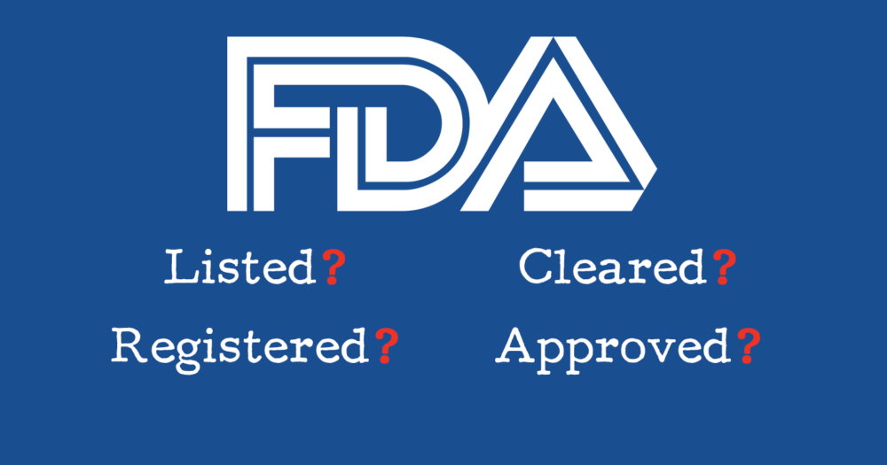 Truth in Advertising (TINA) does a good job at keeping companies accountable regarding deceptive marketing. here is a link to their explanation of terms: truthinadvertising.org/resource/fda-registered-cleared-approved-whats-difference/ [https://truthinadvertising.org/wp-content/uploads/2017/09/FDA-Registered-Cleared-Approved-Differences-Featured-Img-1.png]<truthinadvertising.org/resource/fda-registered-cleared-approved-whats-difference/> FDA Registered, Cleared, Approved: What’s the Difference? – Truth in Advertising<truthinadvertising.org/resource/fda-registered-cleared-approved-whats-difference/> Medical devices like to tout their status with the FDA. But what’s behind these terms? truthinadvertising.org
